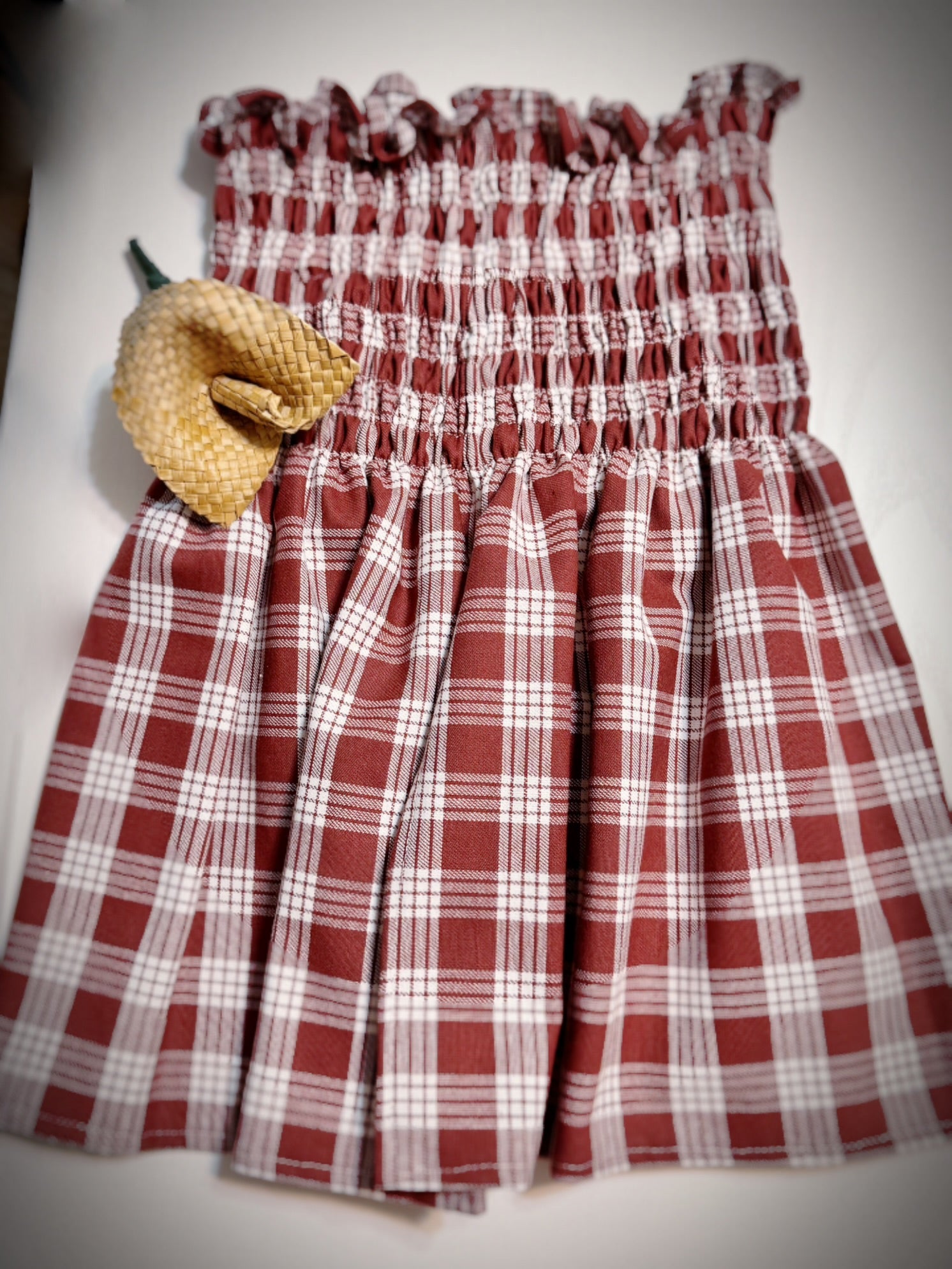 Brown Palaka babydoll top perfect to dress up or down for any occasion. Sewing all done by me with cotton material. So cute and feels so good on the skin. Palaka is a generational print of Hawaii that will last through all times.