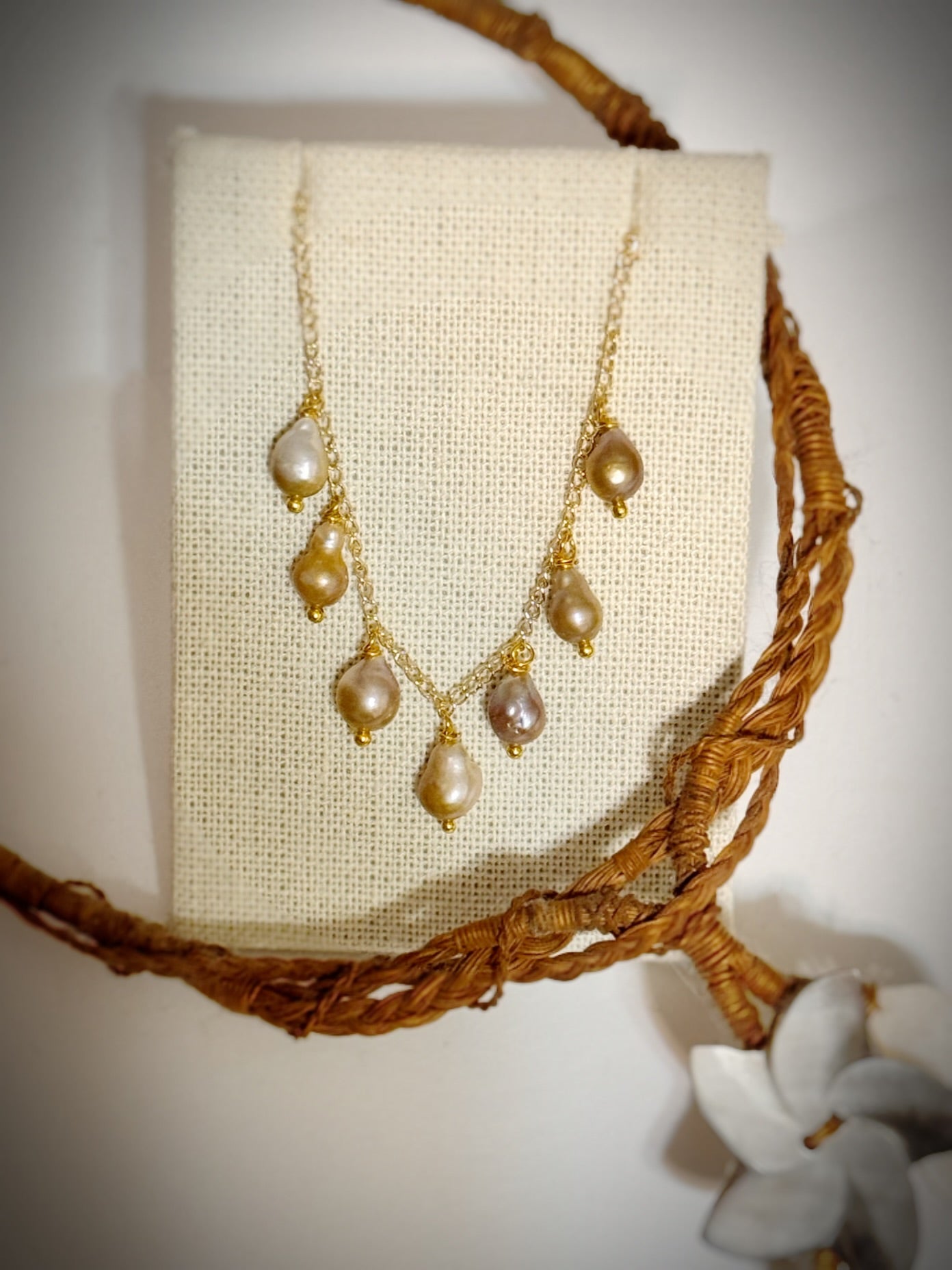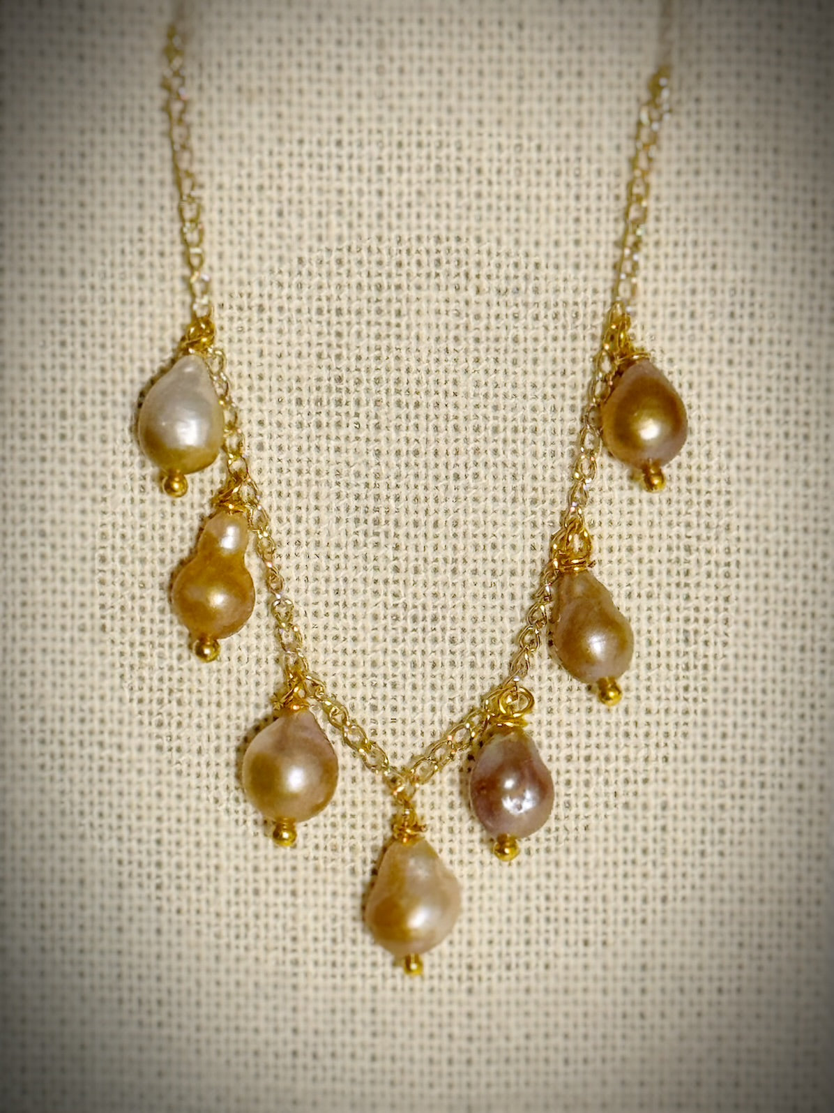 Akoya sunshine pearls dangle necklace on gold chain 16”