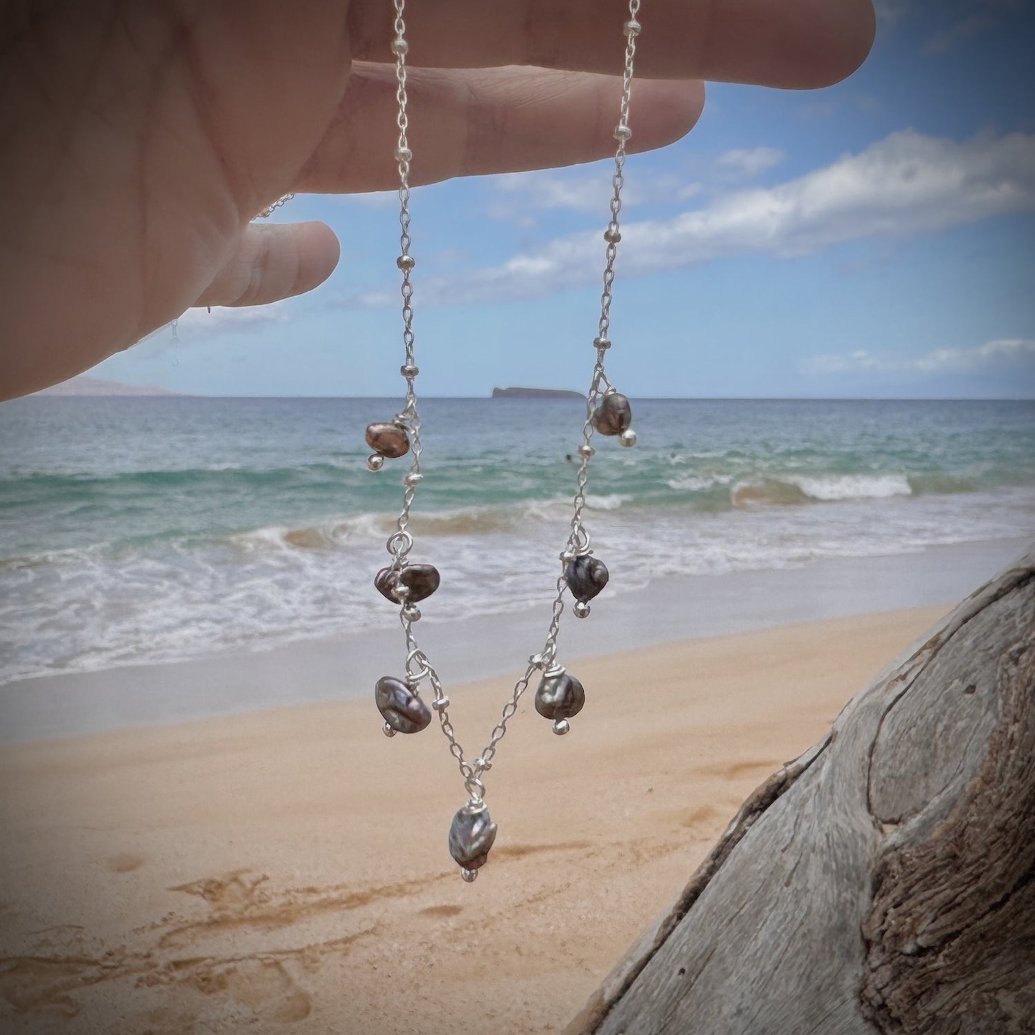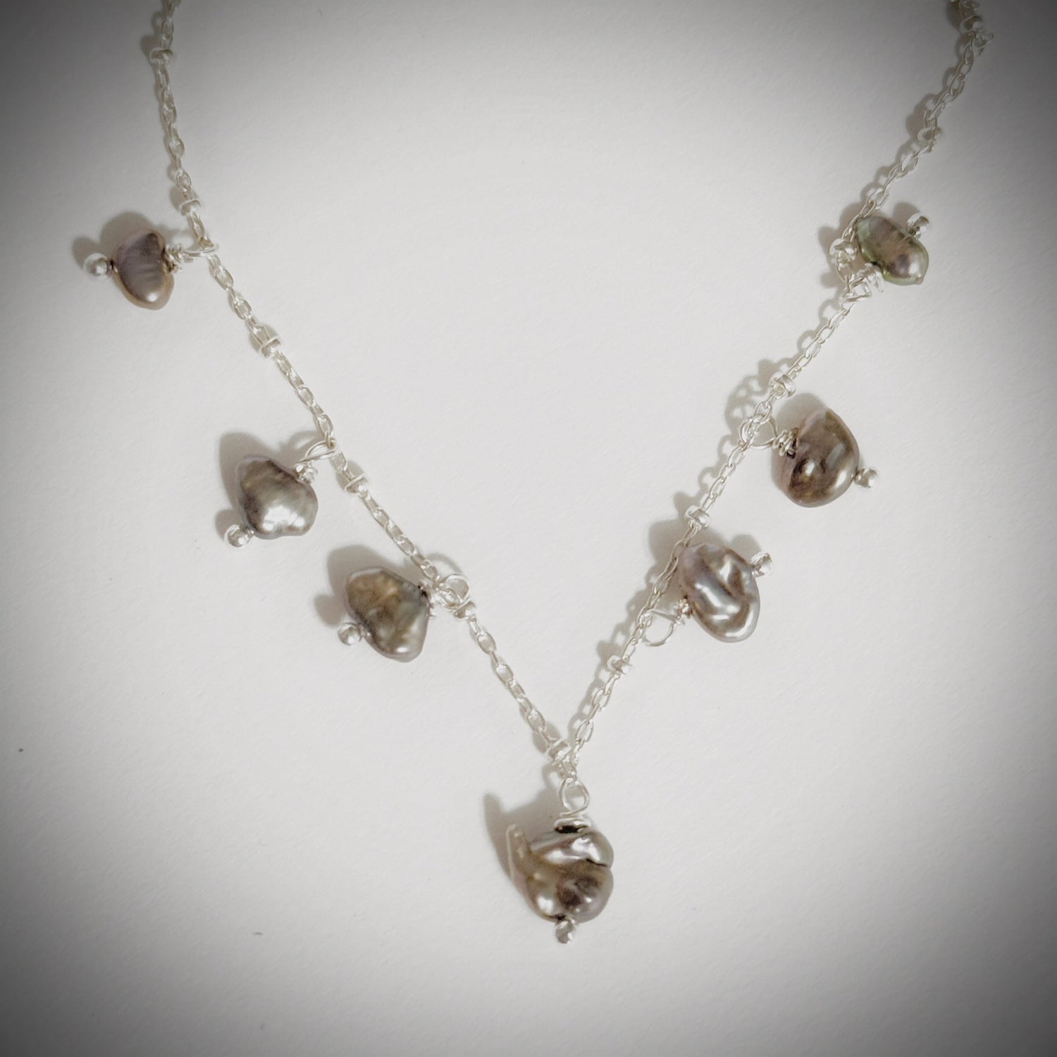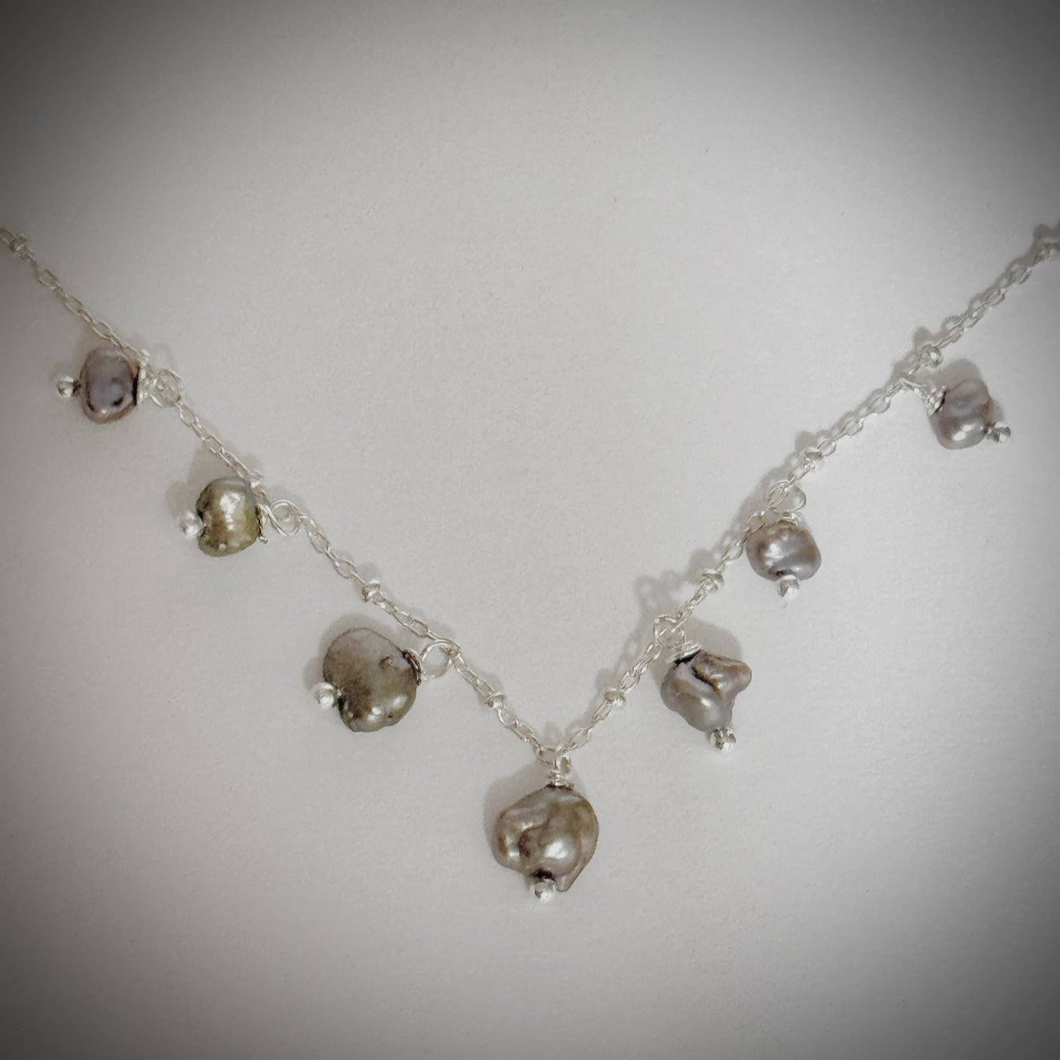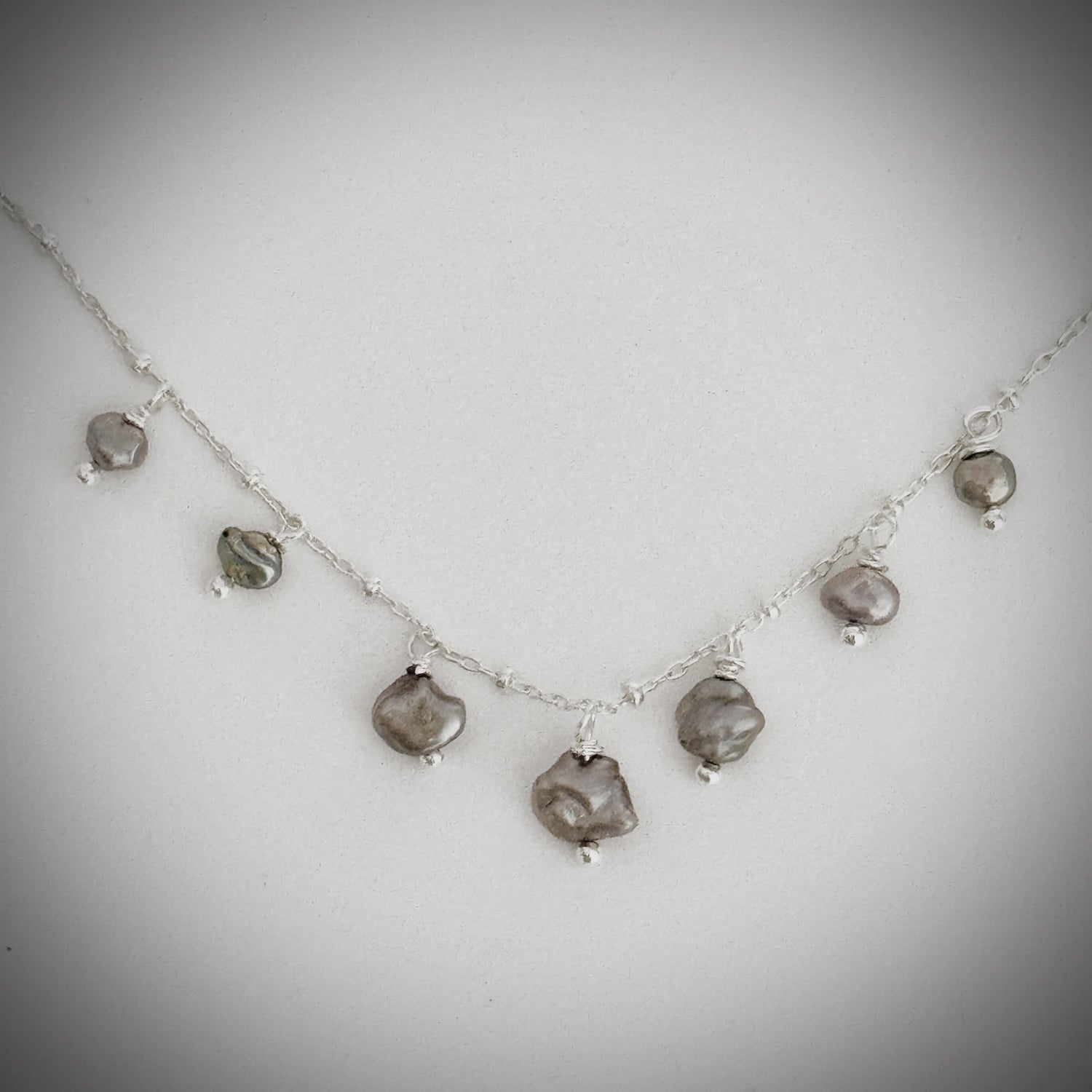 Keshi pearls dangle necklace on sterling silver chain 16”