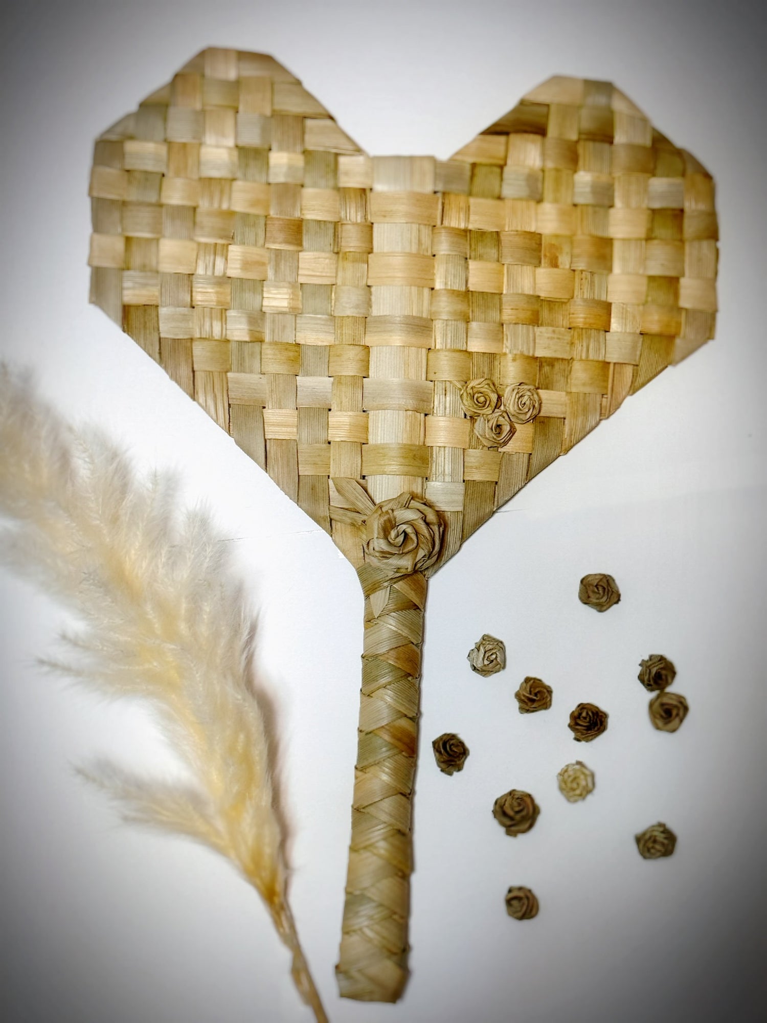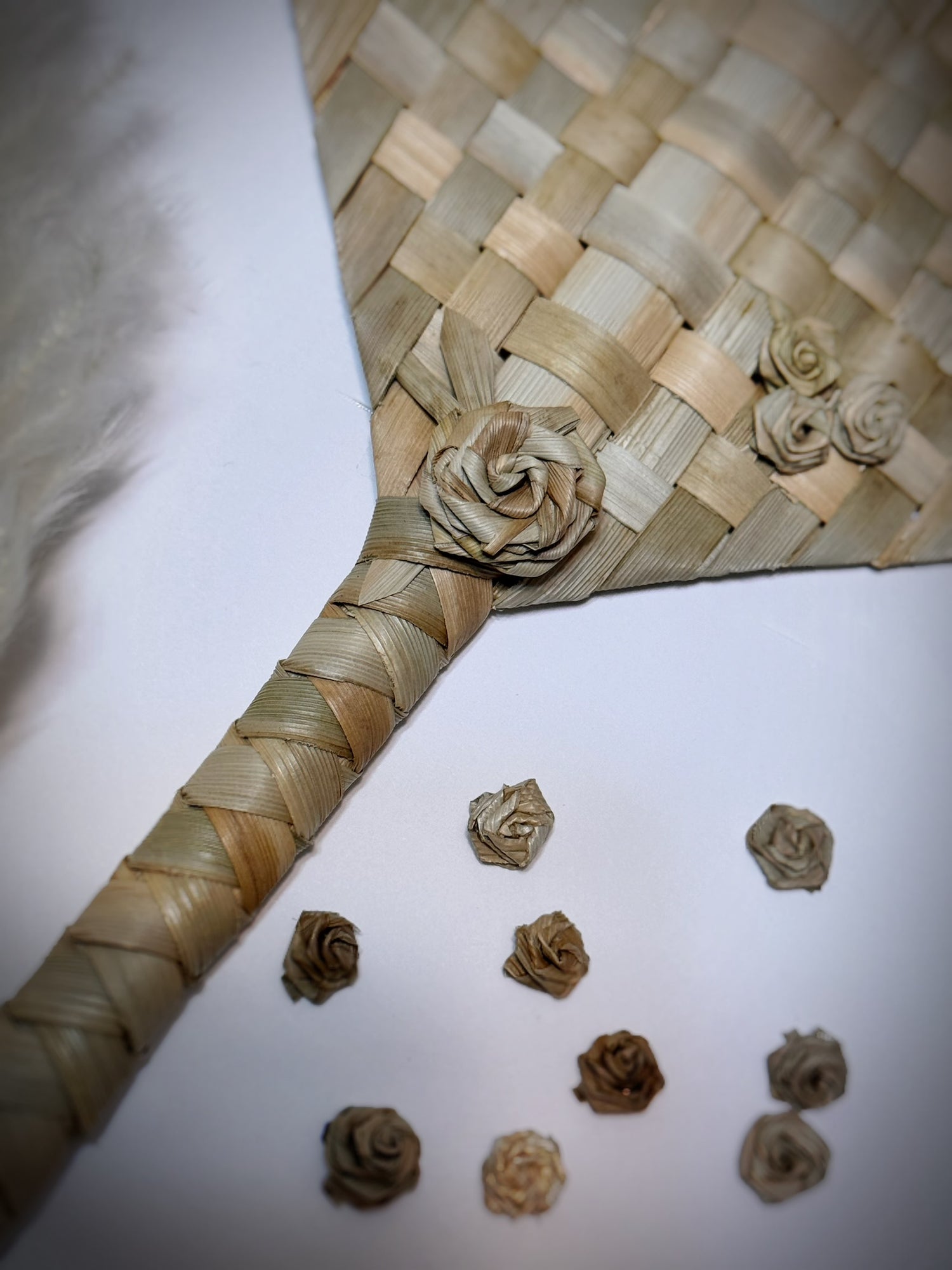 Lauhala haka pe’ahi with rosettes, a mini 8x10ish in size that will help keep you cool any time anywhere as long as your hand get mana lol!