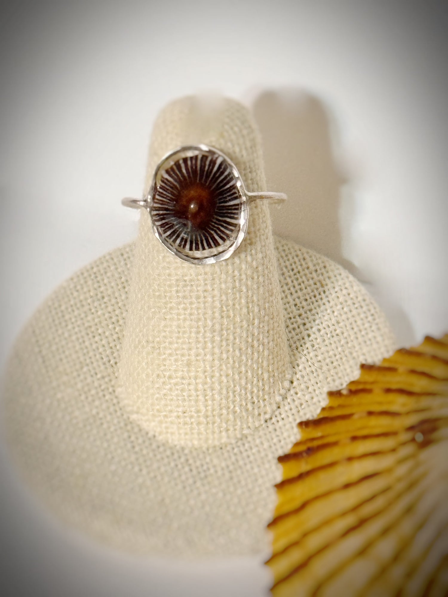 Tiny black & white 10x14mm shell ‘opihi silver ring size 6.5
