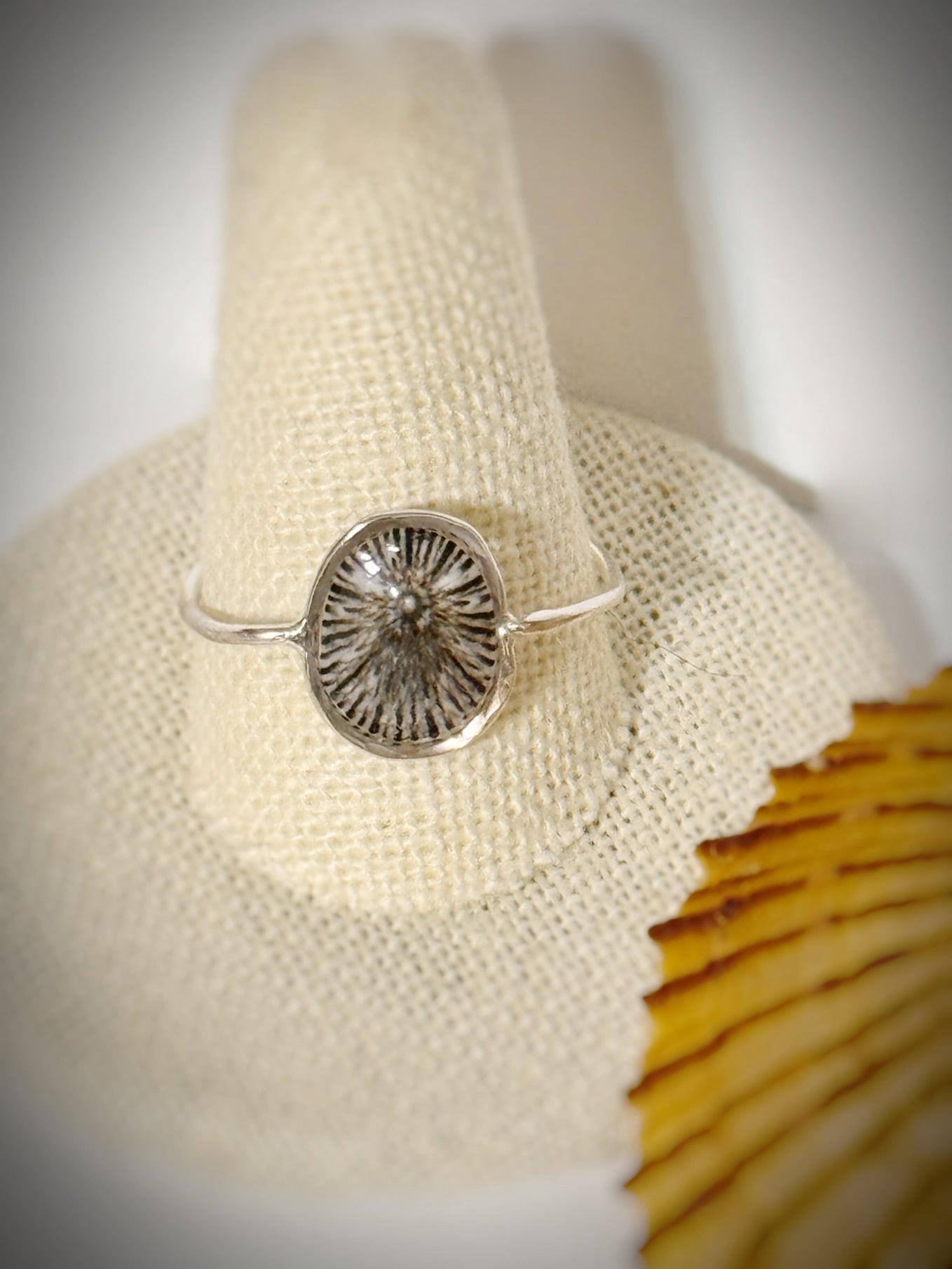 Tiny black & white 8x11mm shell ‘opihi silver ring size 10.5