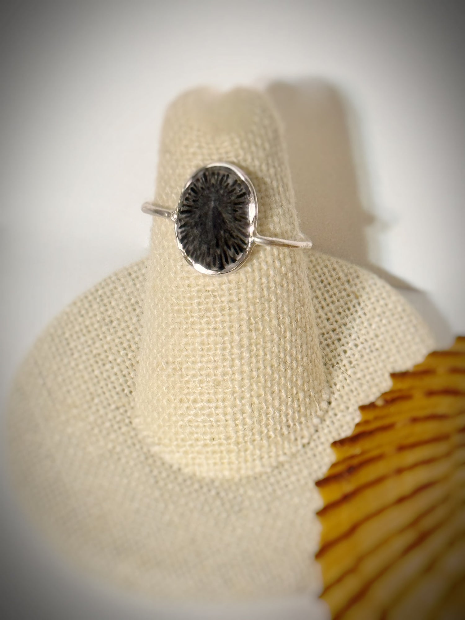 Tiny black 8x10mm shell ‘opihi silver ring size 6.5