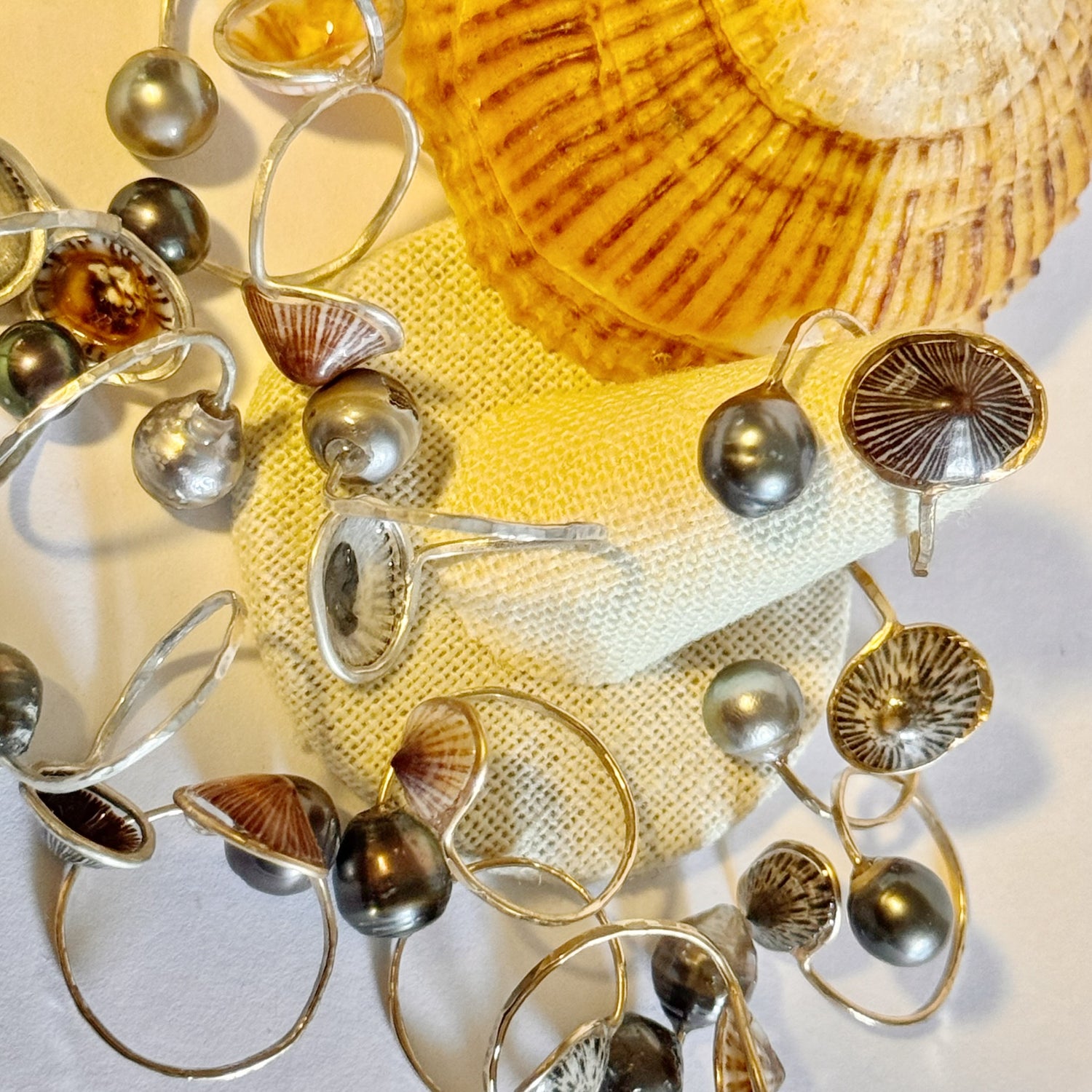 ‘Opihi with Tahitian pearl gold cuff adjustable shell ring
