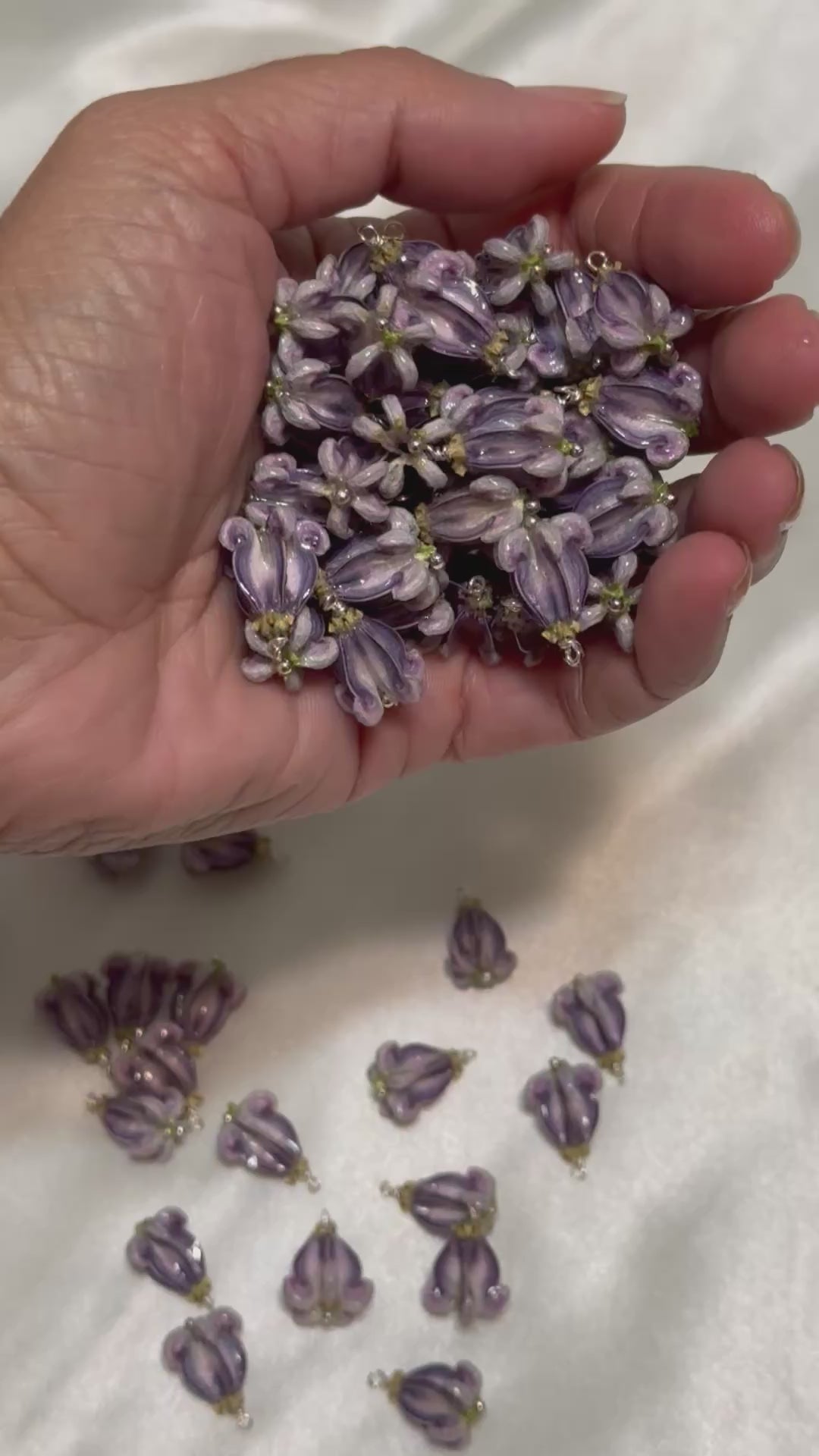 Purple pua kalaunu “crown flower” real flower that’s been preserved and coated with a fine coat of resin on 18” silver chain and hook earring set