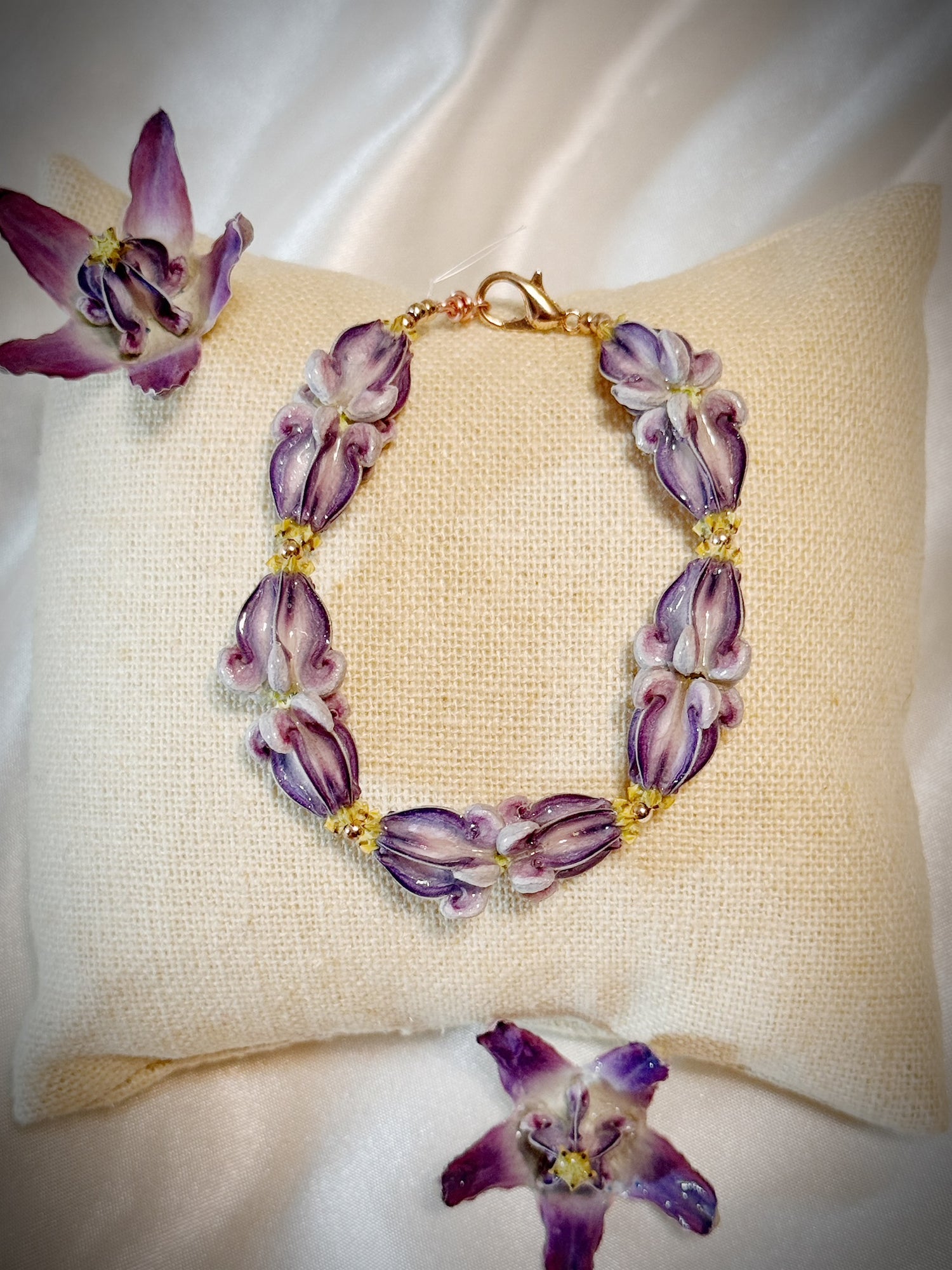 Pua Kalaunu purple double dangle bracelet with silver spacers and clasp