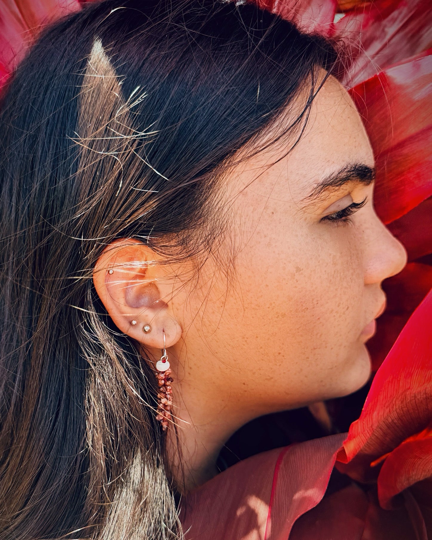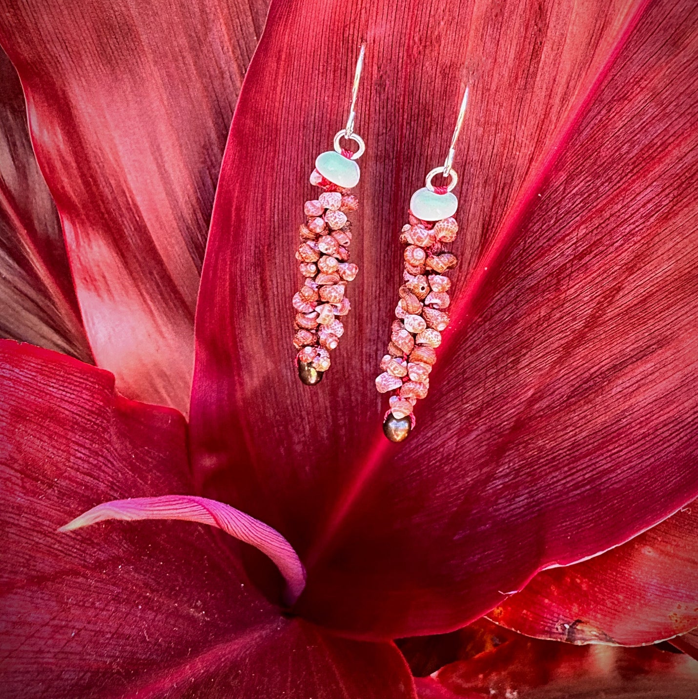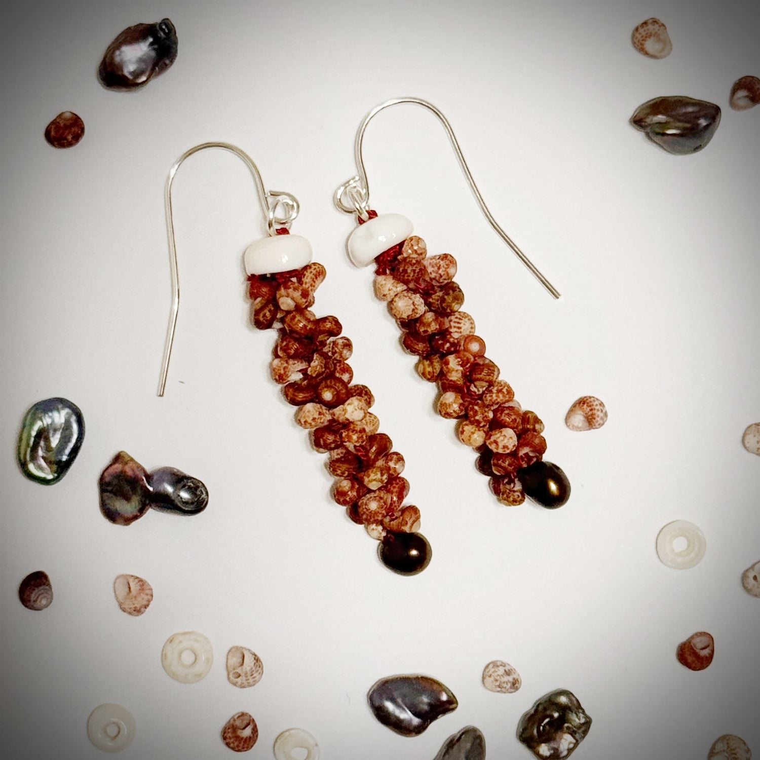 Small multiple kahelelani seashell dangling silver earrings with a pula shell topper and and small black pearl to complement it. Perfect for the simple minimalist jewelry wearer’s found on the beaches in Hawaii. Every shell is so beautifully different with its own imperfections.