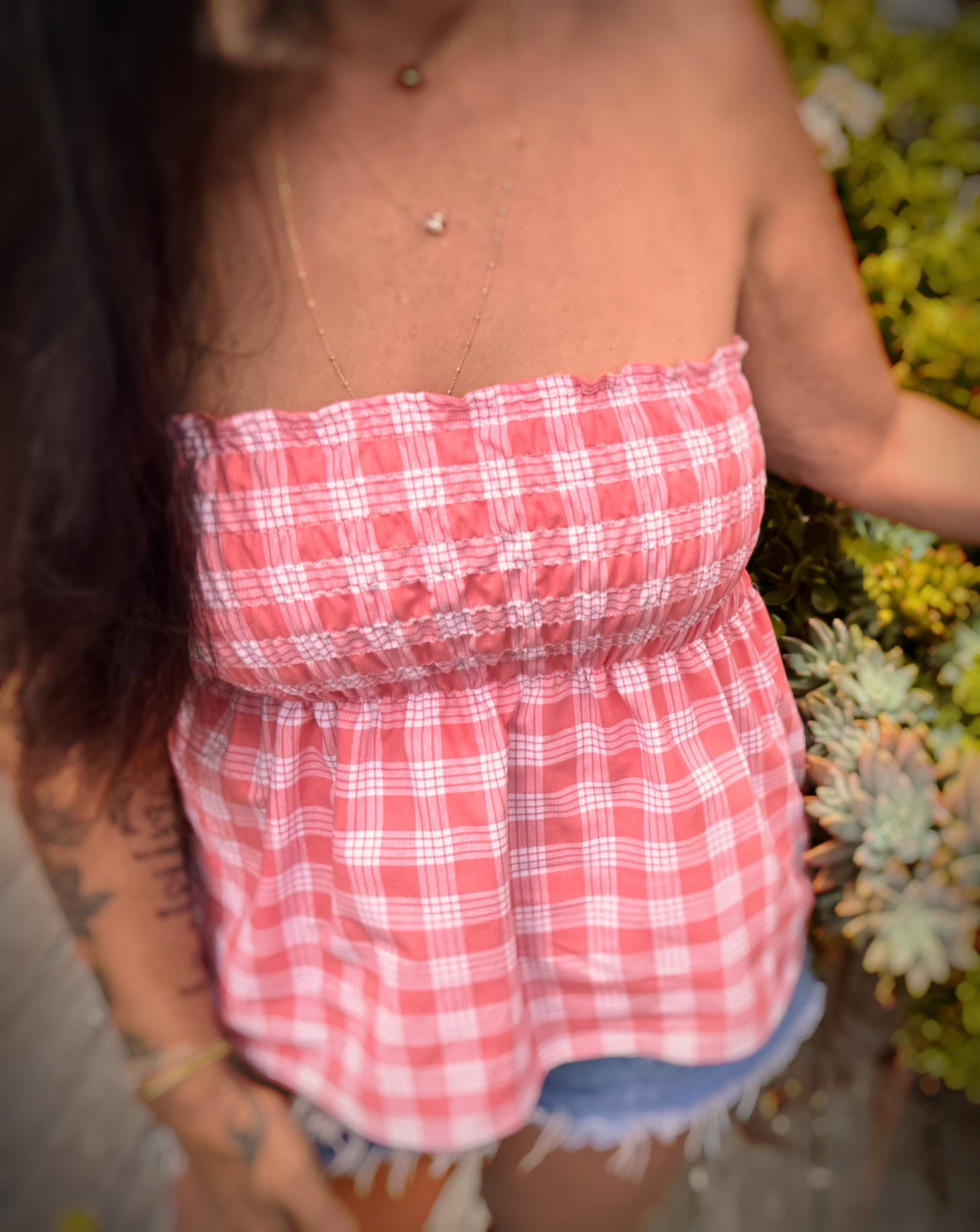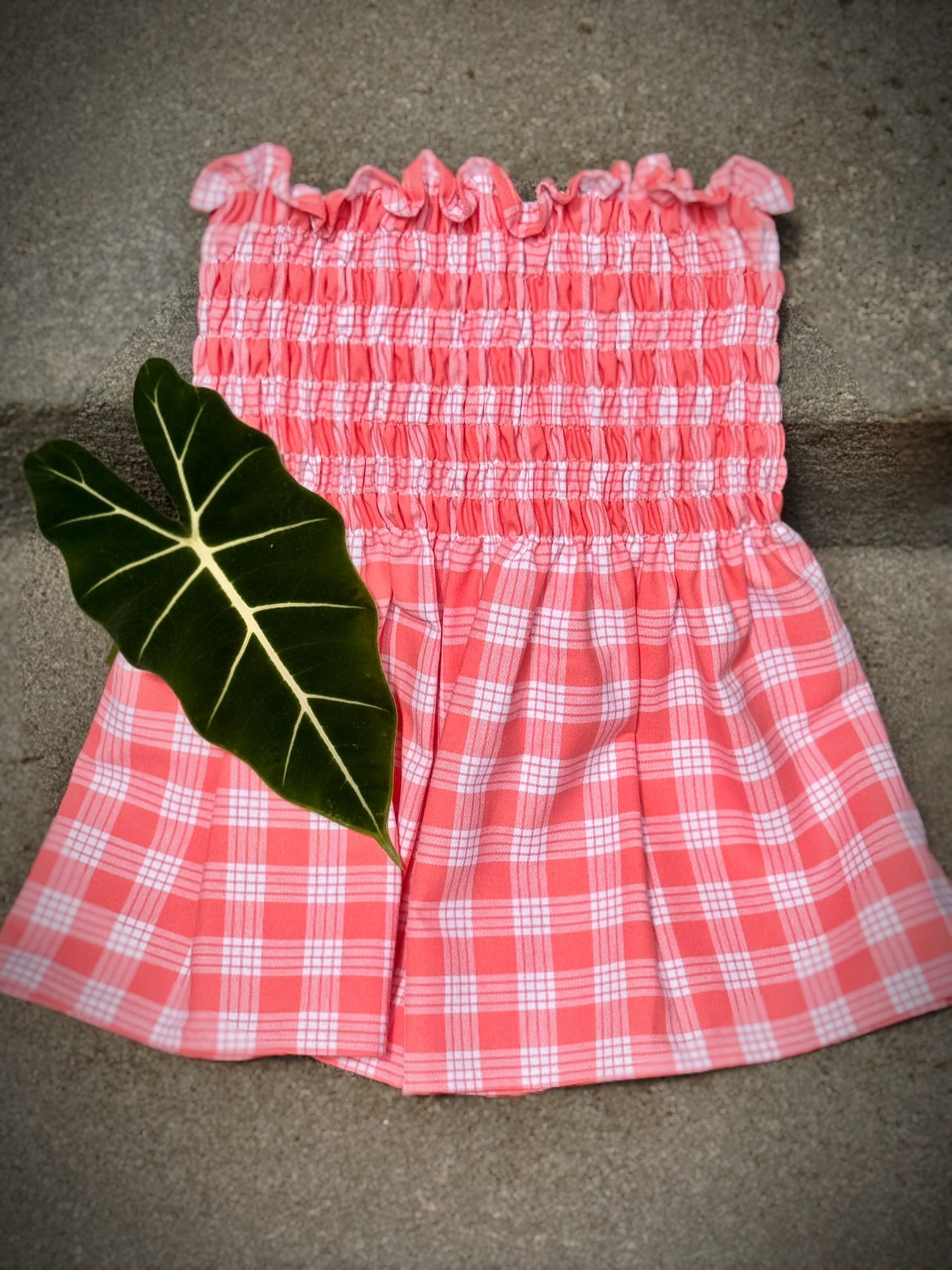 Coral Palaka babydoll top perfect to dress up or down for any occasion. Sewing all done by me with cotton material. So cute and feels so good on the skin. Palaka is a generational print of Hawaii that will last through all times.