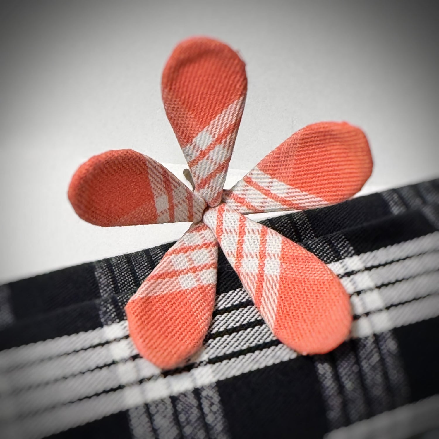 Palaka hair pua pick made with cotton Palaka material and floral wire about 4” wide