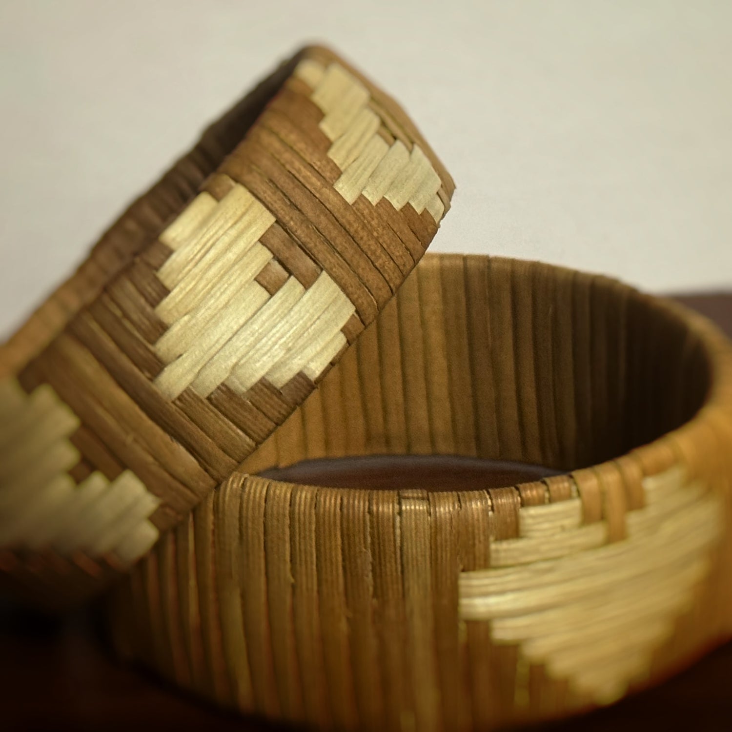 Lauhala woven 3 side hearts bracelet light in dark about an inch wide size 8