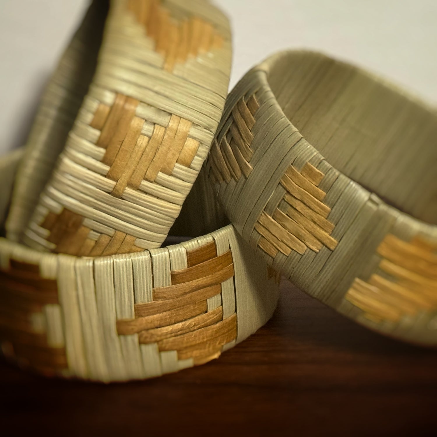 Lauhala woven 3 side hearts bracelet dark in light about an inch wide size 8