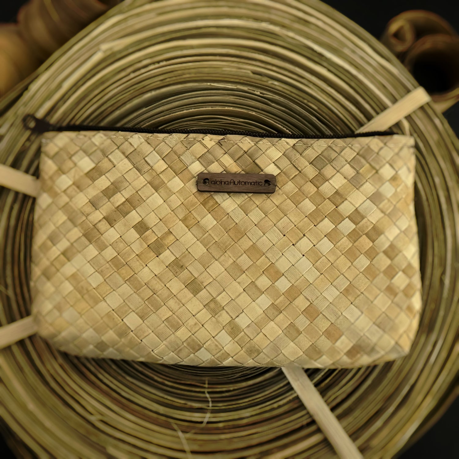 Lauhala woven zipper clutch-small