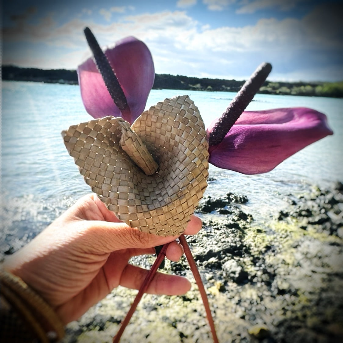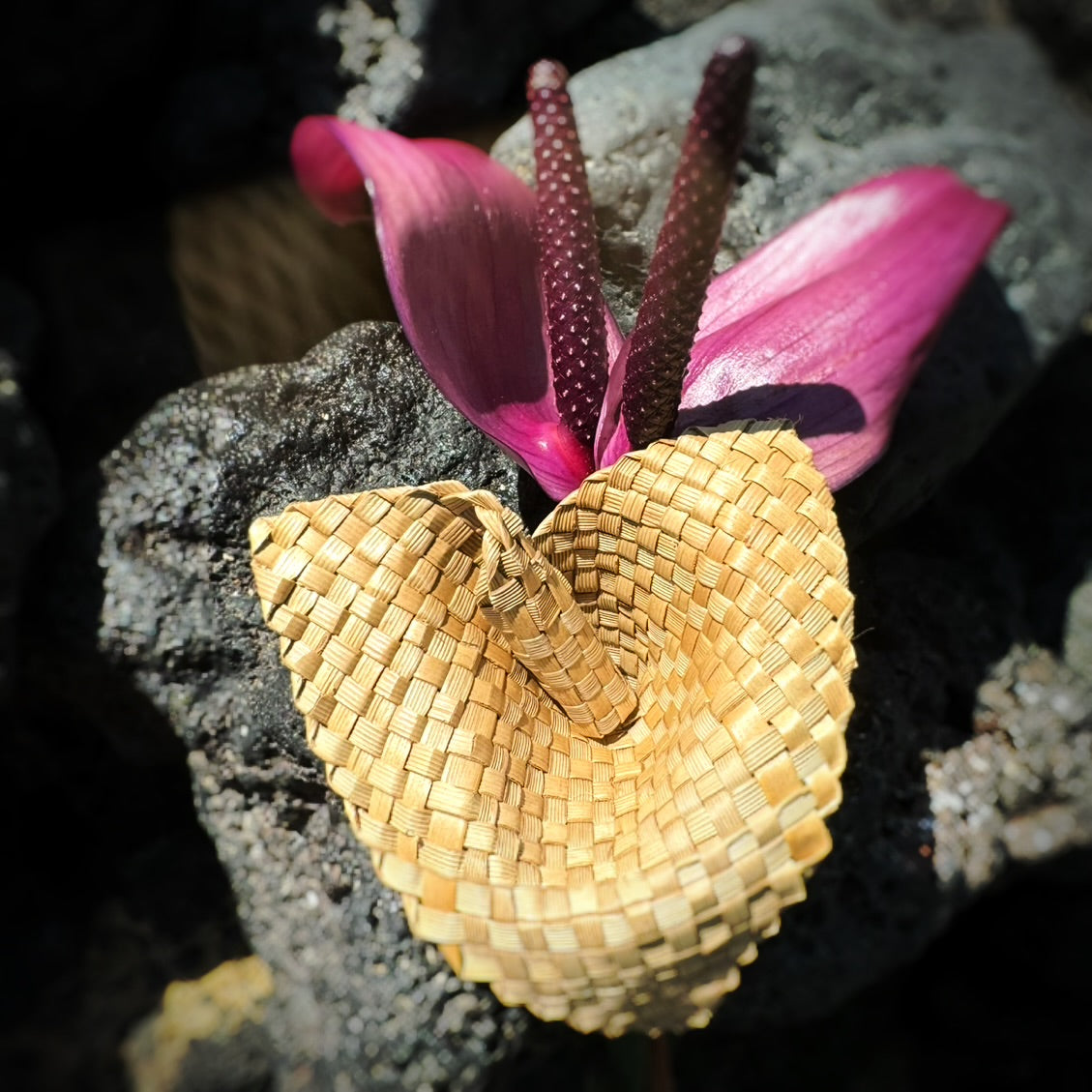 Lauhala woven anthurium flower