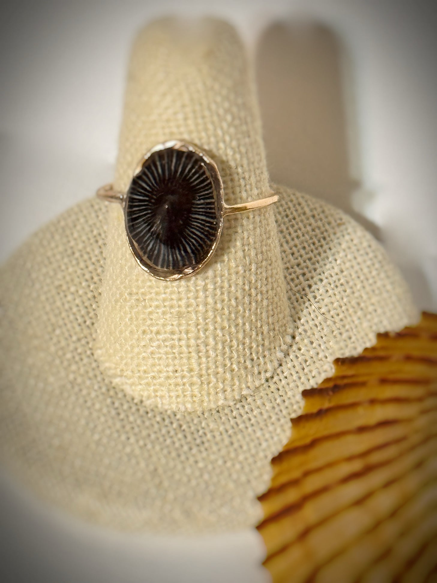 Tiny black 5x15mm shell ‘opihi gold ring size 8 1/4