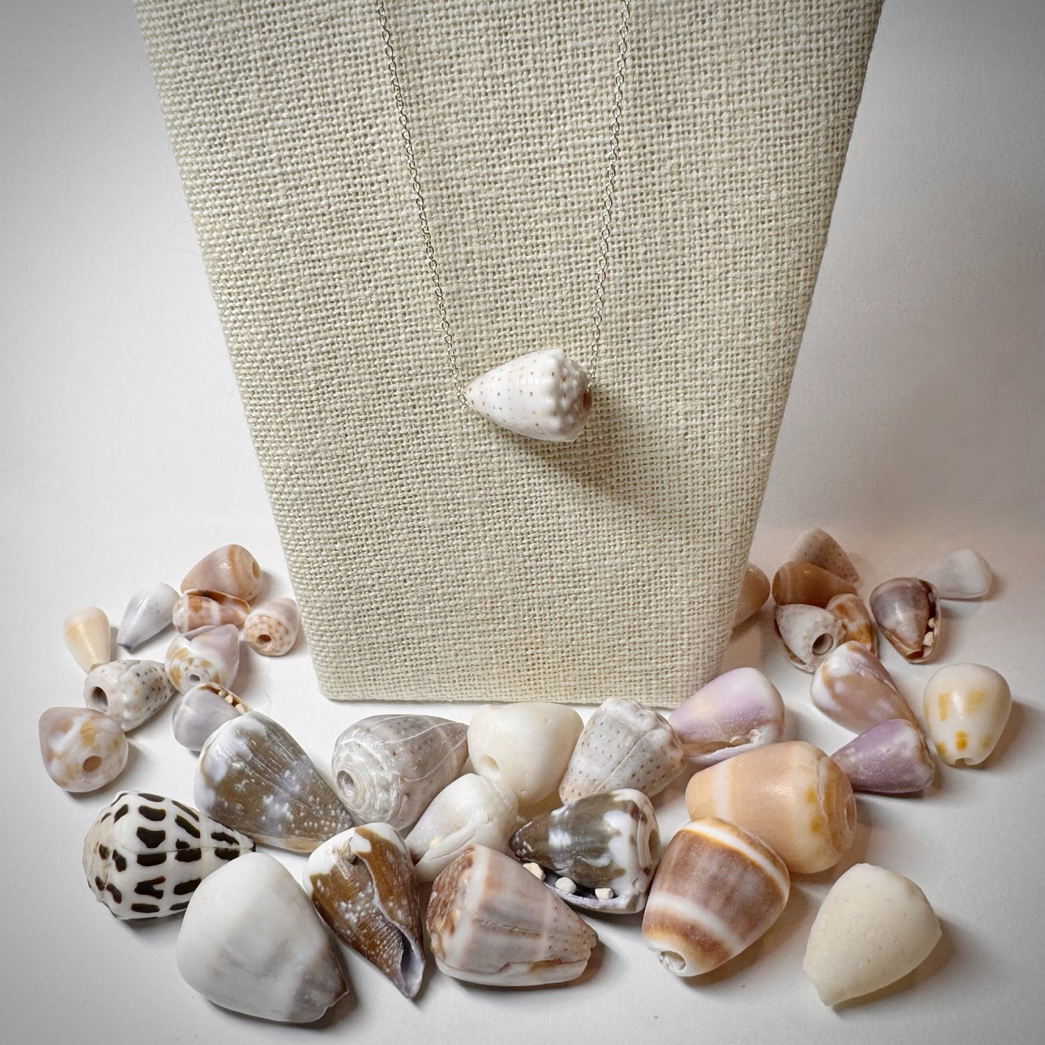 Pastel abbreviated Cone 17mm seashell floating on a 17 1/2” silver chain. Perfect for the simple minimalist jewelry wearer’s found on the beaches in Hawaii. Every shell is so beautifully different with its own imperfections.