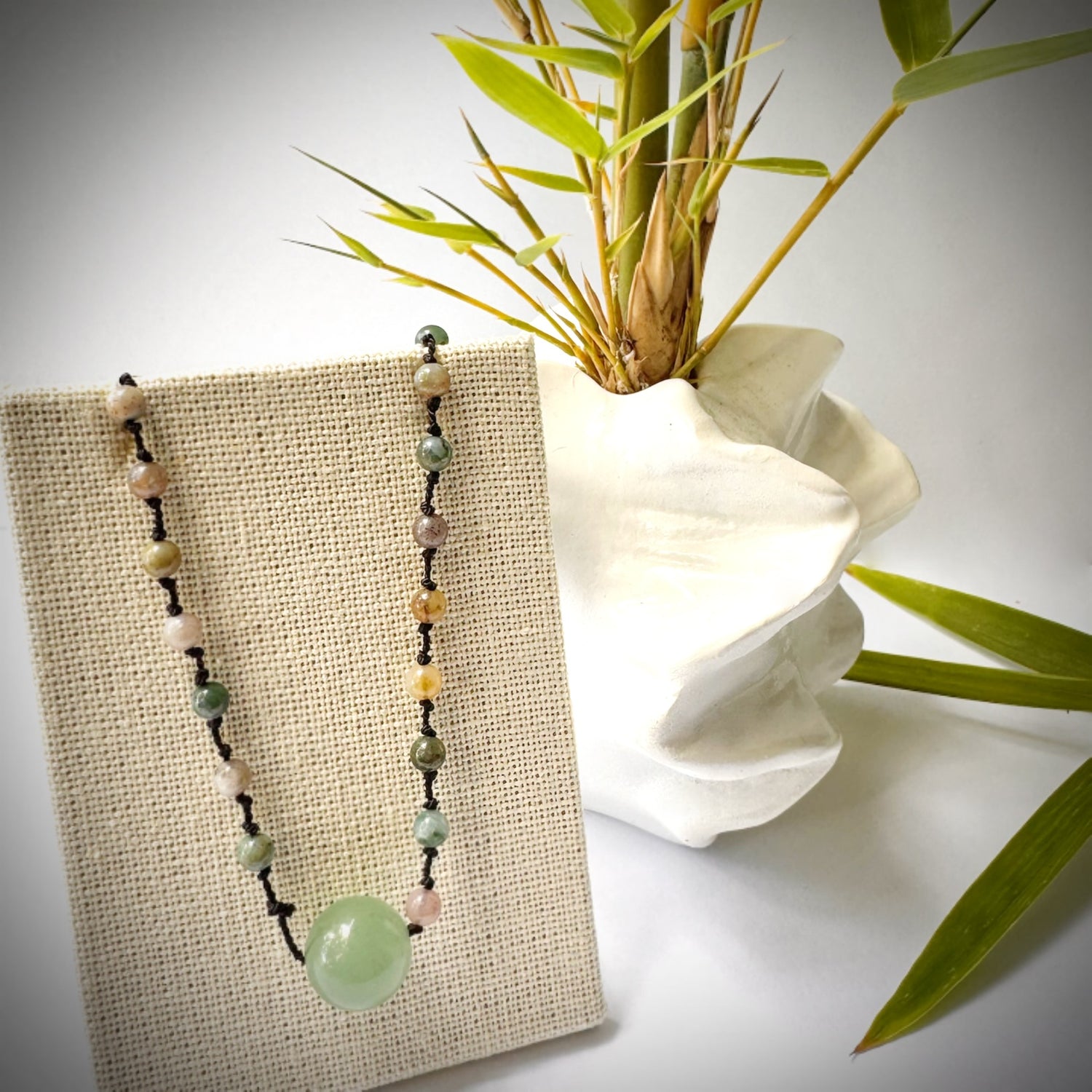 Rainbow Jade mini round stones and extra large round green Jade pendant knotted choker